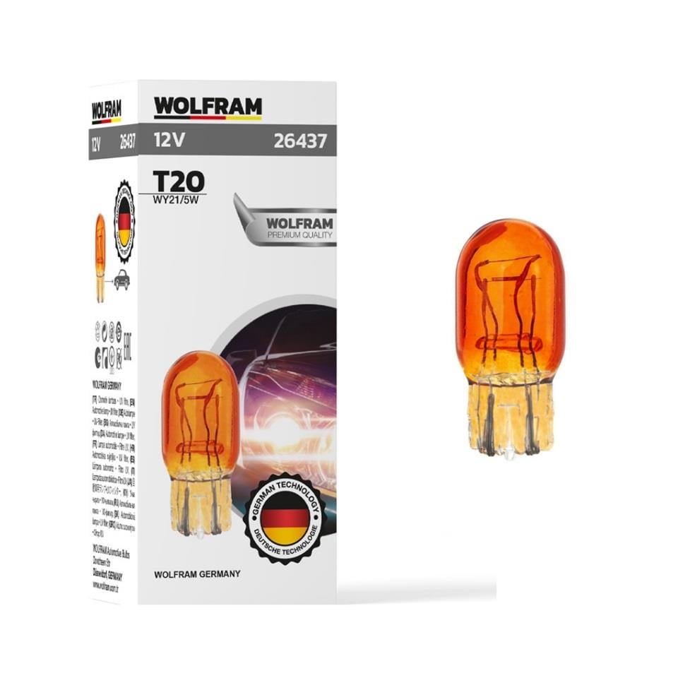 WOLFRAM 12V 1016 AMPUL DİPSİZ T20 21/5W SARI GERMANY (WOLFRAM 26437)