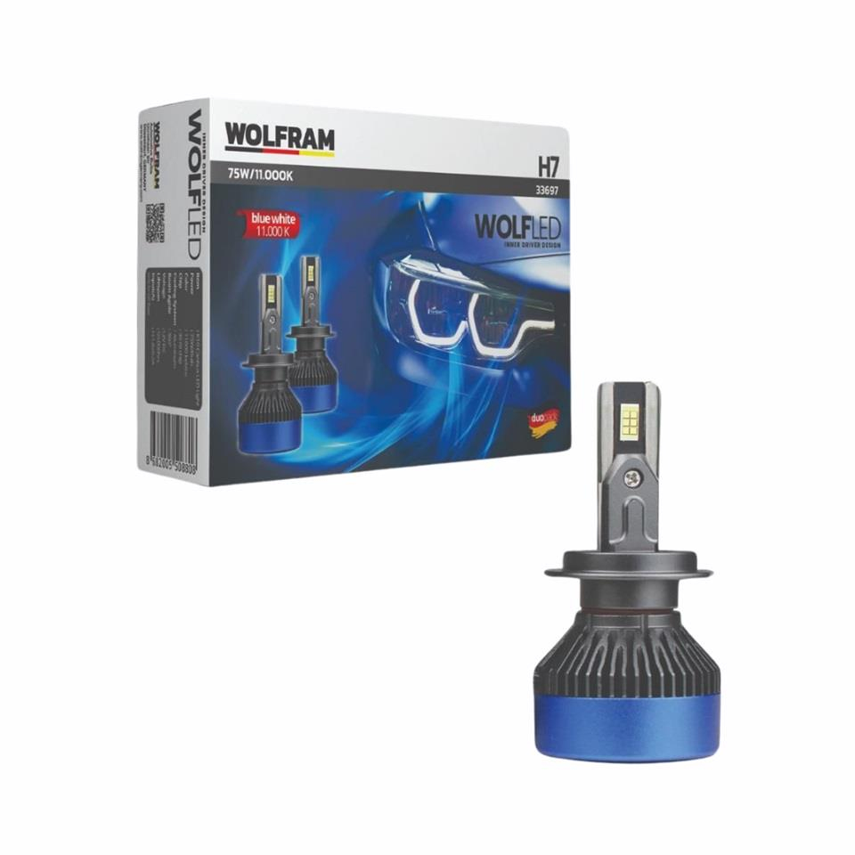 WOLFRAM 12V H7 CSP LED XENON FAR AMPUL SETİ 7000K 12000 LÜMEN 75W CANBUS GERMANY (WOLFRAM 33697)