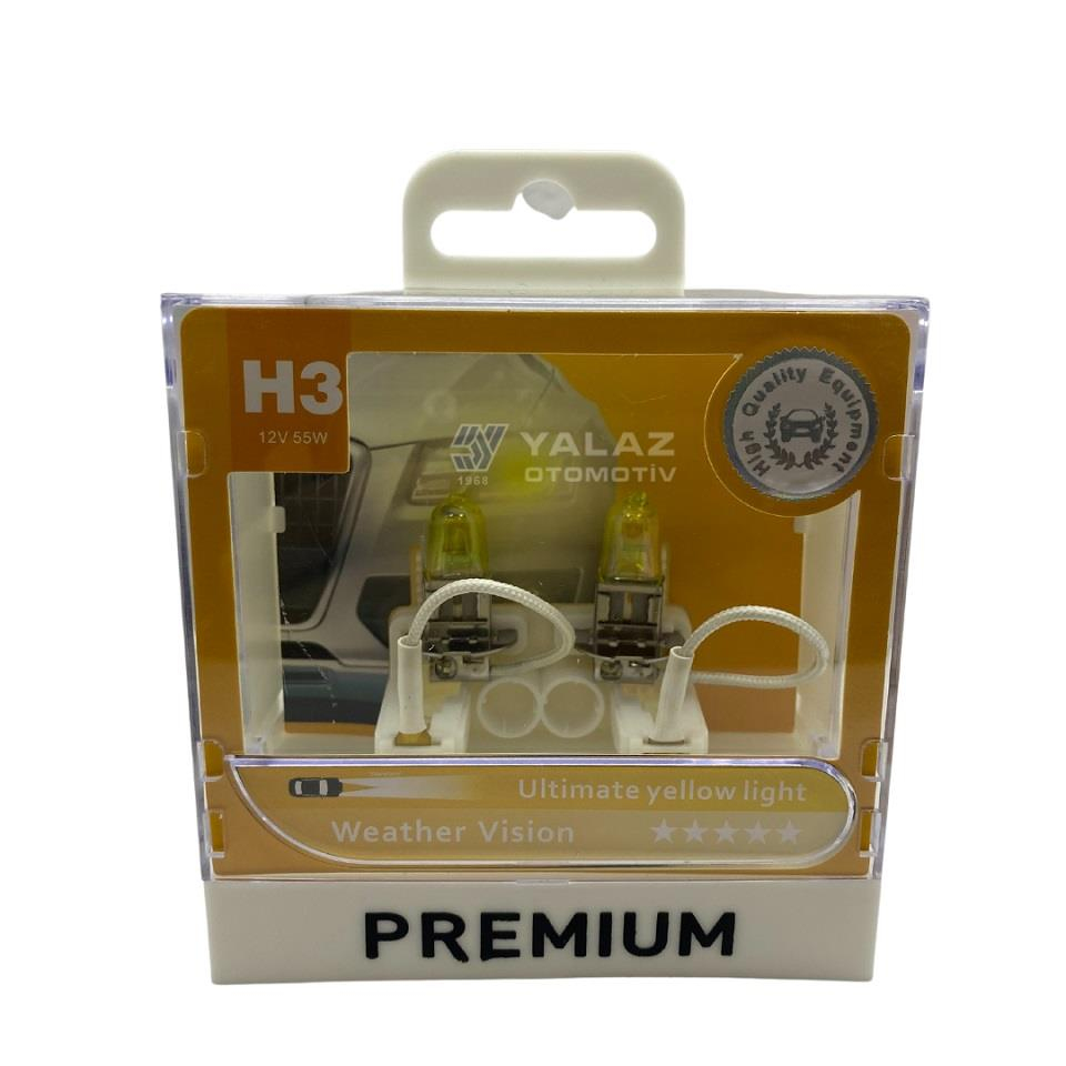 PREMIUM 12V H3 AMPUL 55W ULTIMATE YELLOW 3000K SARI (2 AD) (PREMIUM 12336-Y)
