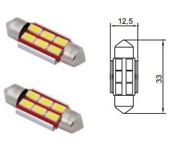 TESLA 12V SOFİT AMPUL 6 LEDLİ  BEYAZ CB (33 MM) (2 AD)