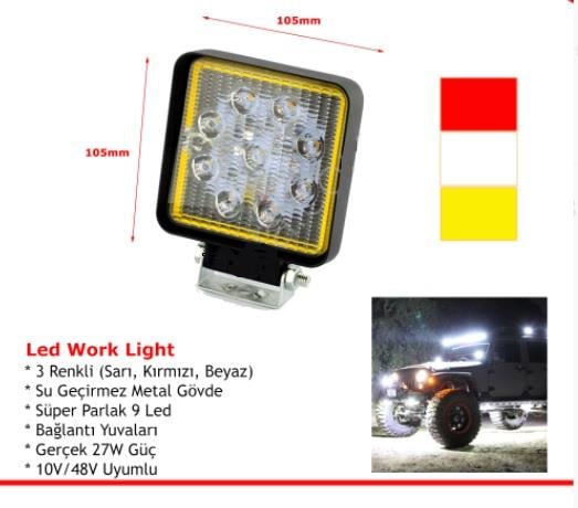 10-48V ÇALIŞMA LAMBASI (BEYAZ-KIRMIZI-SARI) ÇAKARLI FONKSİYONLU 9X3W POWER LEDLİ (74*98) _