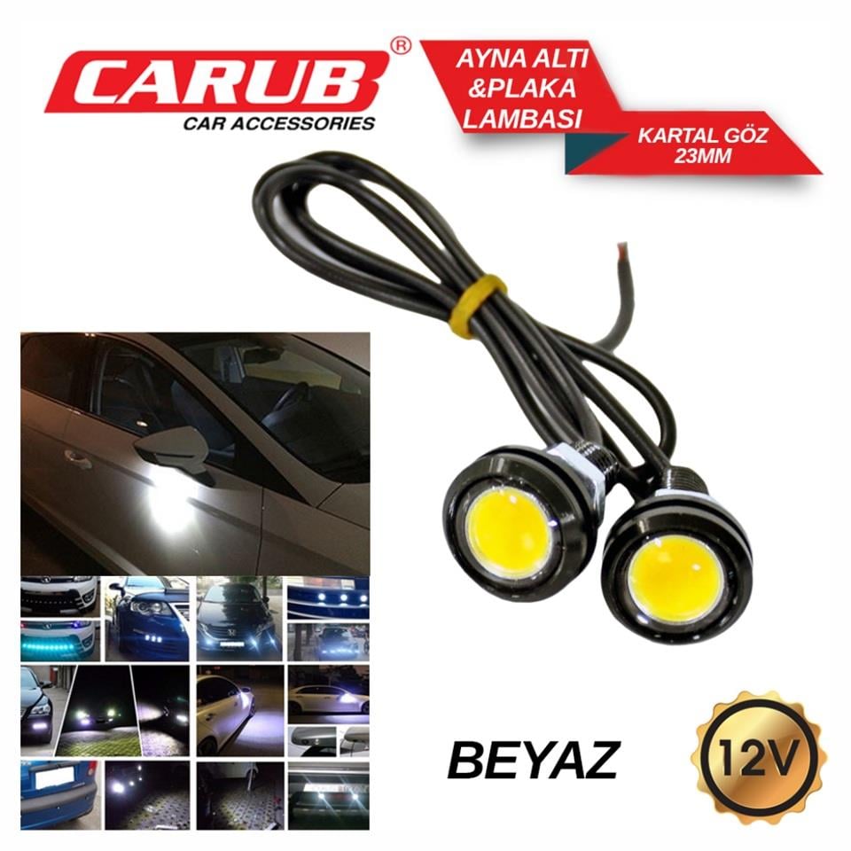 12V GÜNDÜZ SÜRÜŞ-AYNA ALTI LED BEYAZ (MERCEKLİ) (9/22 MM) (2 AD) (CARUB BR4621022)