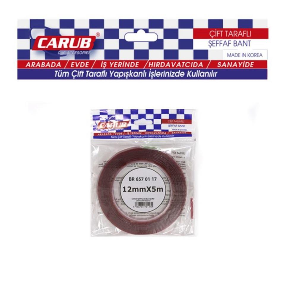 ÇİFT TARAFLI BANT 12 MM X 5 MT ŞEFFAF (SİLİKONLU) (CARUB BR6570117)